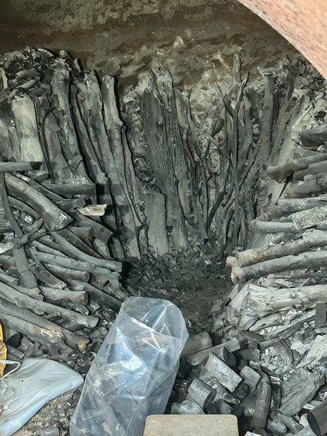 黒炭・備長炭など様々な炭を試すも理想に届かず。